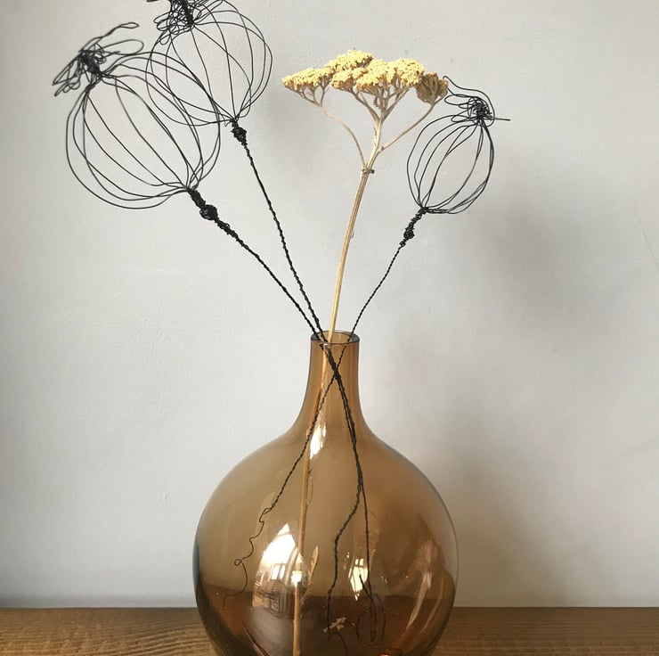 Handcrafted Wire Poppy Seed Head collection-Three handmade wire flower heads-Wir