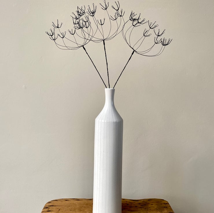 A hedgerow collection of three handcrafted wire Cow Parsley. An everlasting contemporary flower bouquet that will adorn any room in the house