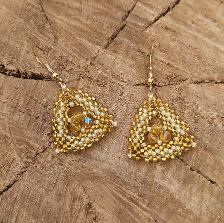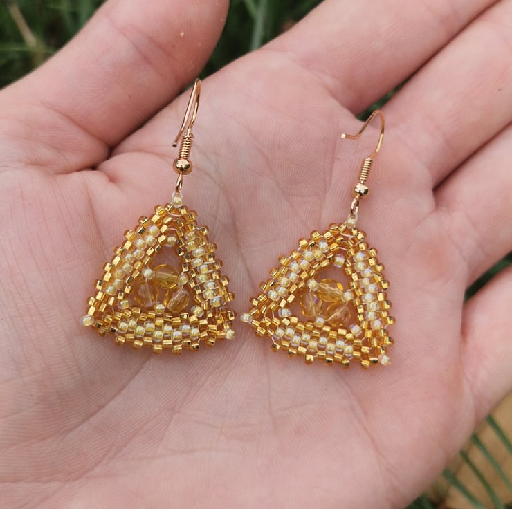 Handmade Geometric Triangle Beaded Earrings – Tribal-Inspired, UK Made