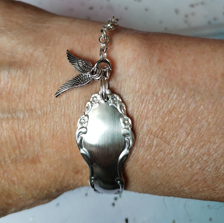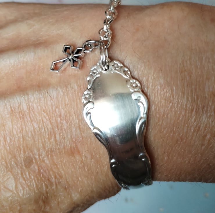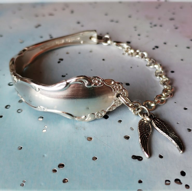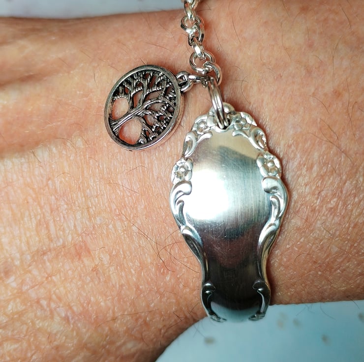 Unique handmade silver plated spoon handle bracelet, upcycled from lonely old vintage spoons and forks and given a new lease of life.