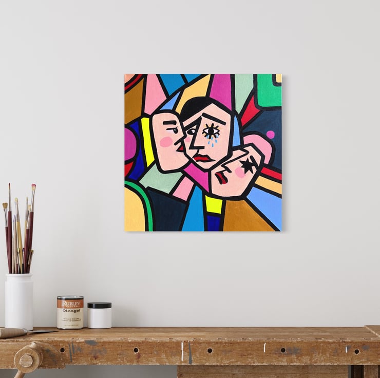 Abstract colorful acrylic painting on canvas, 50x50cm, handmade.