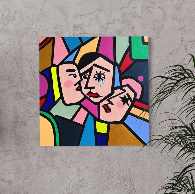 Abstract, multicolored acrylic painting, cubism, modern art