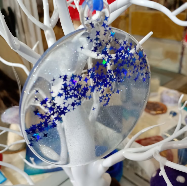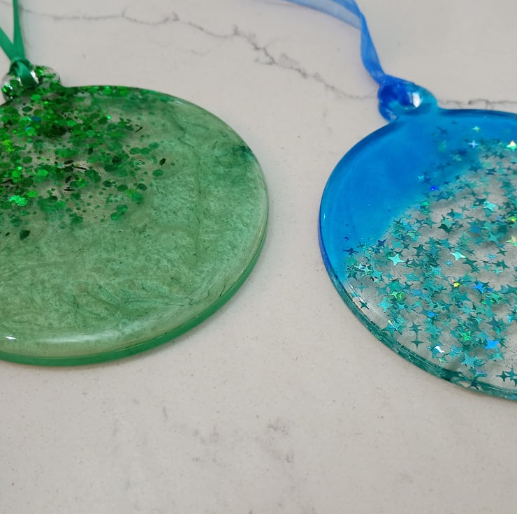 Beautiful resin bauble decorations. Each one handmade and finished with the best pigments and glitters.