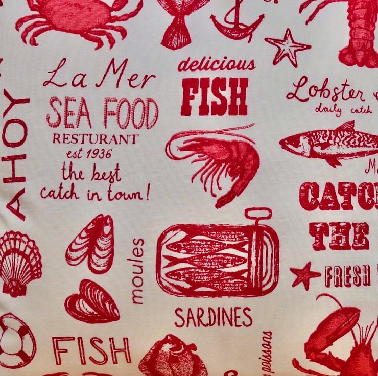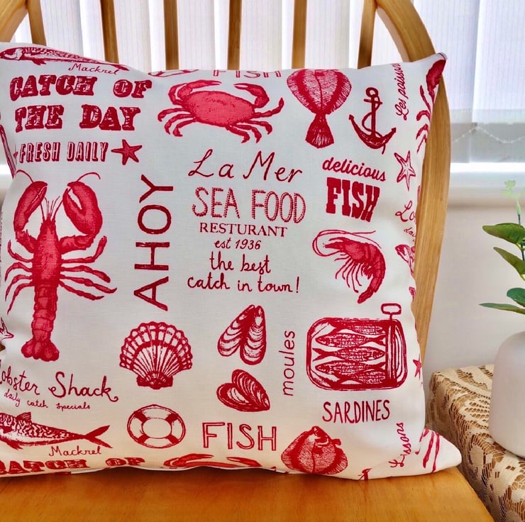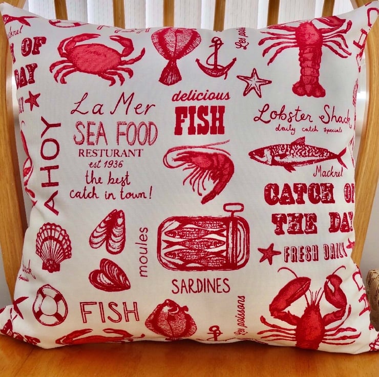 Cushion: Red Seafood design, Double Sided with pad and zip fastening