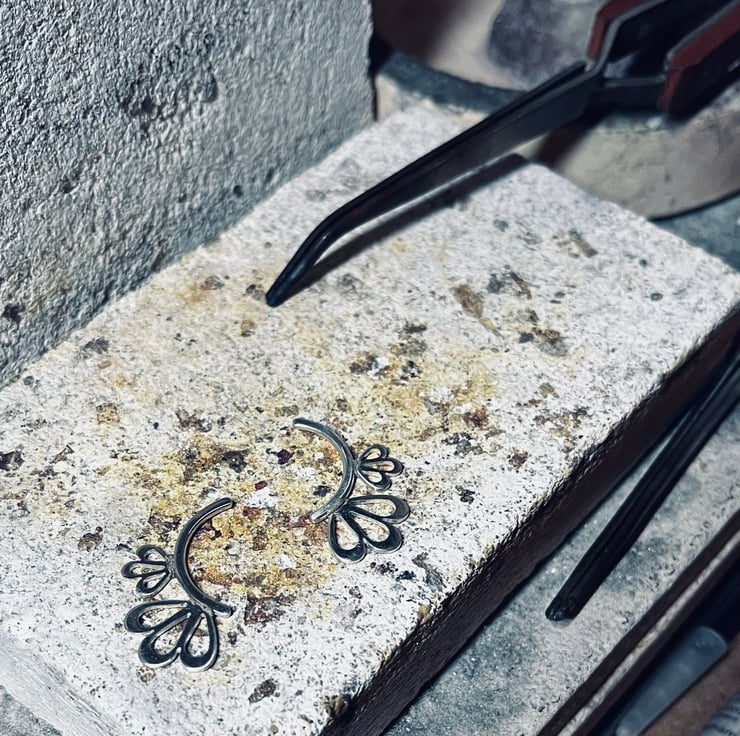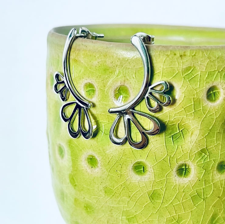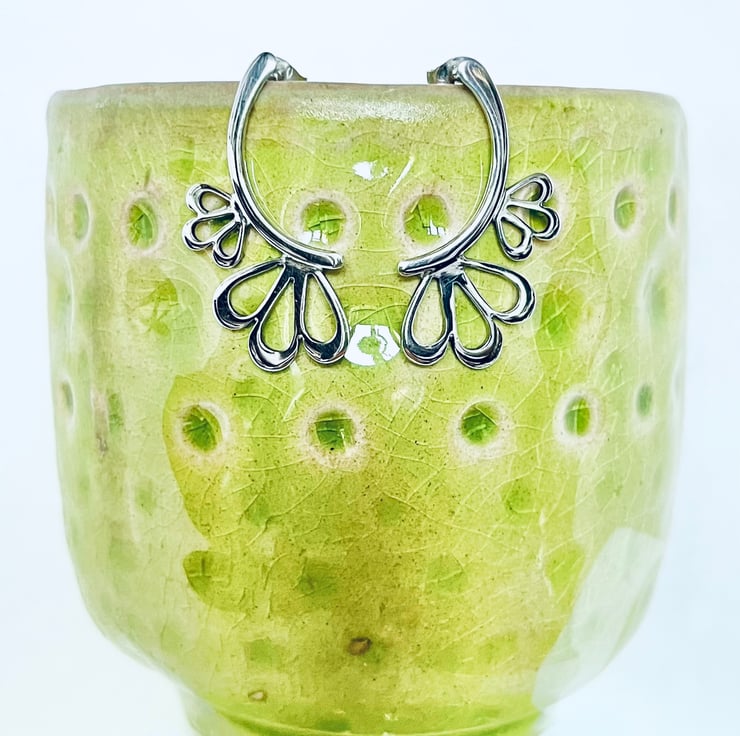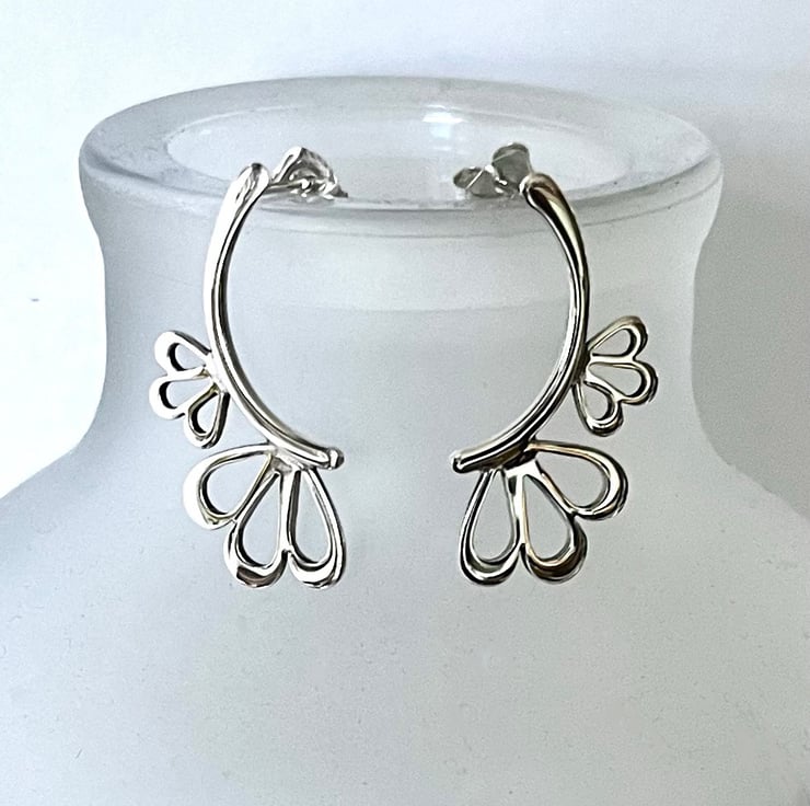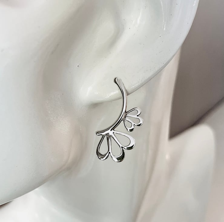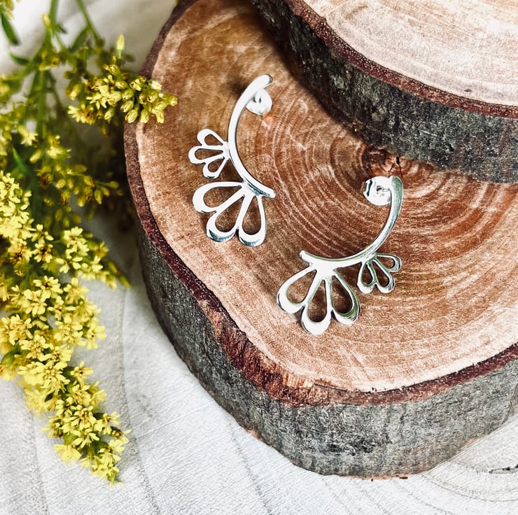 These handmade elegant floral sterling silver curved stud earrings are inspired by the beautiful spring blossom, that I love so much. These delicate flowers are not with us for long, so these simplistic representation of them can be worn to celebrate them all year round.