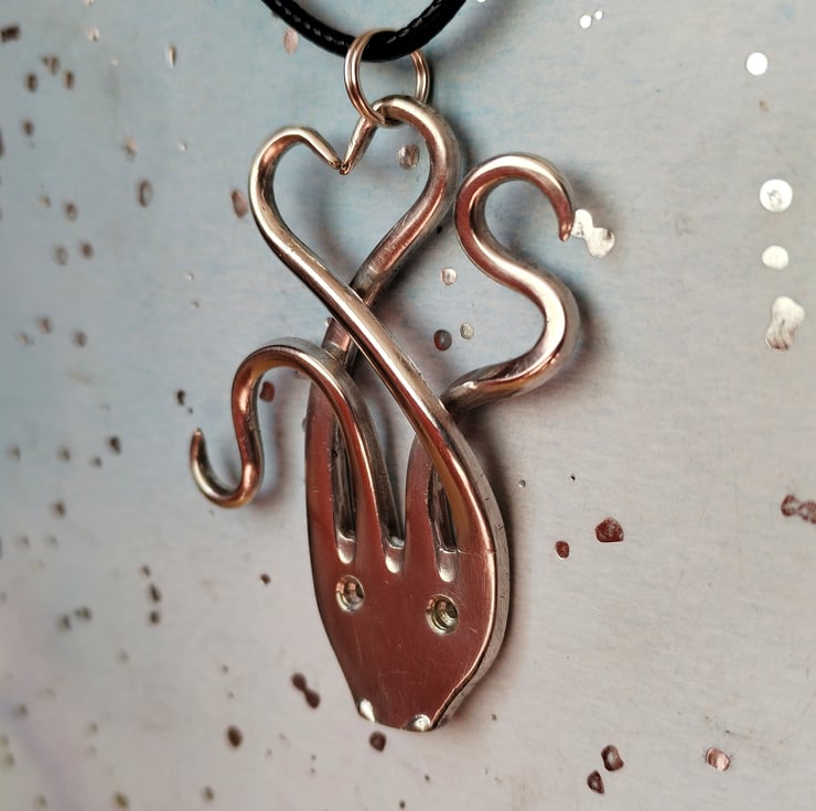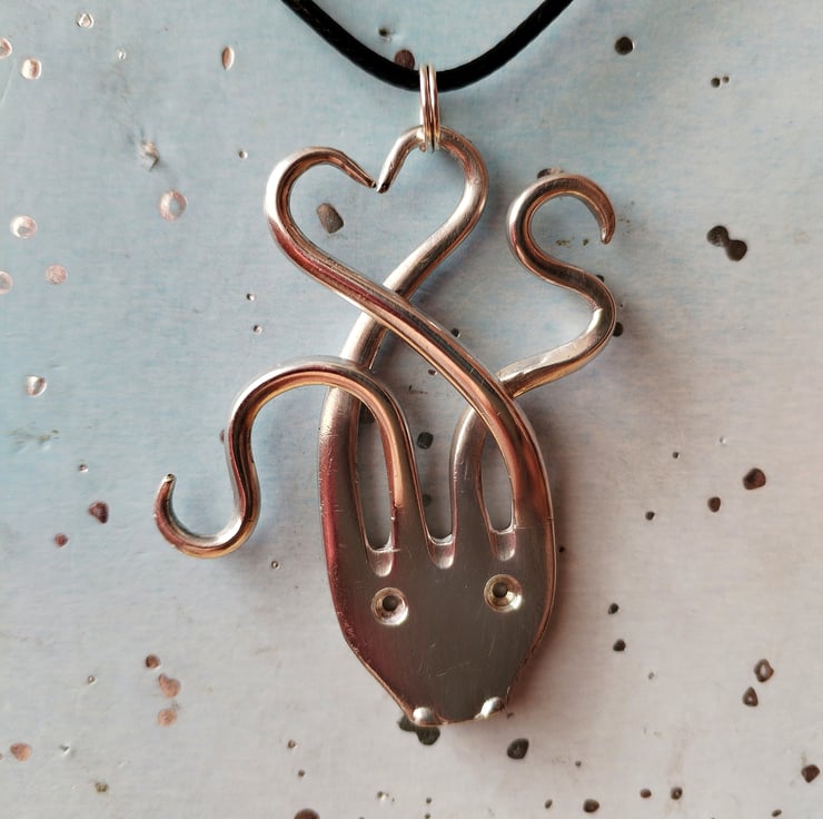 Unique handmade silver plated Medusa fork pendant necklace, upcycled from lonely old vintage forks and given a new lease of life.