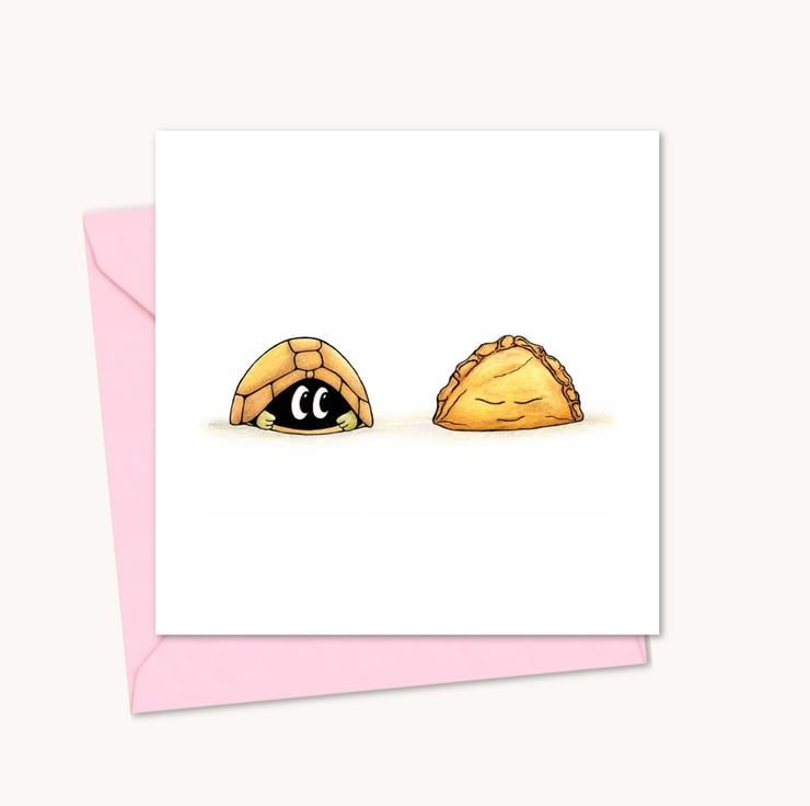 Brighten someone's day with our funny tortoise greeting card, featuring an cute illustration of a little tortoise with his pasty friend! Perfect to add a touch of humour to any occasion.