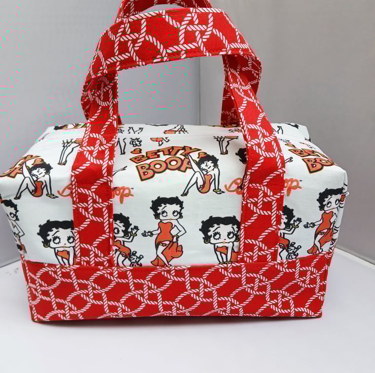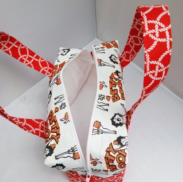 Betty Boop Zipped Bag, multi purpose. This bag is made from 100% cotton. The bag fabric has interfacing for support. White lining.. For those who are into Betty Boop, his is a must have.