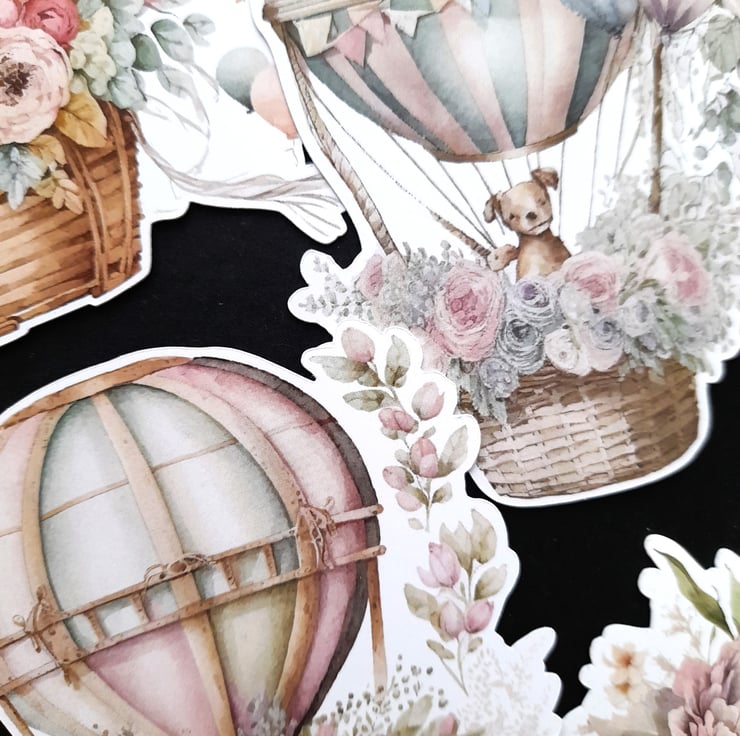 Large handmade die cut ephemera / embellishments with a beautiful 'capture your dreams' theme printed onto 250gsm silk cardstock. Wonderful for as card toppers or for scrap booking, journaling, etc.