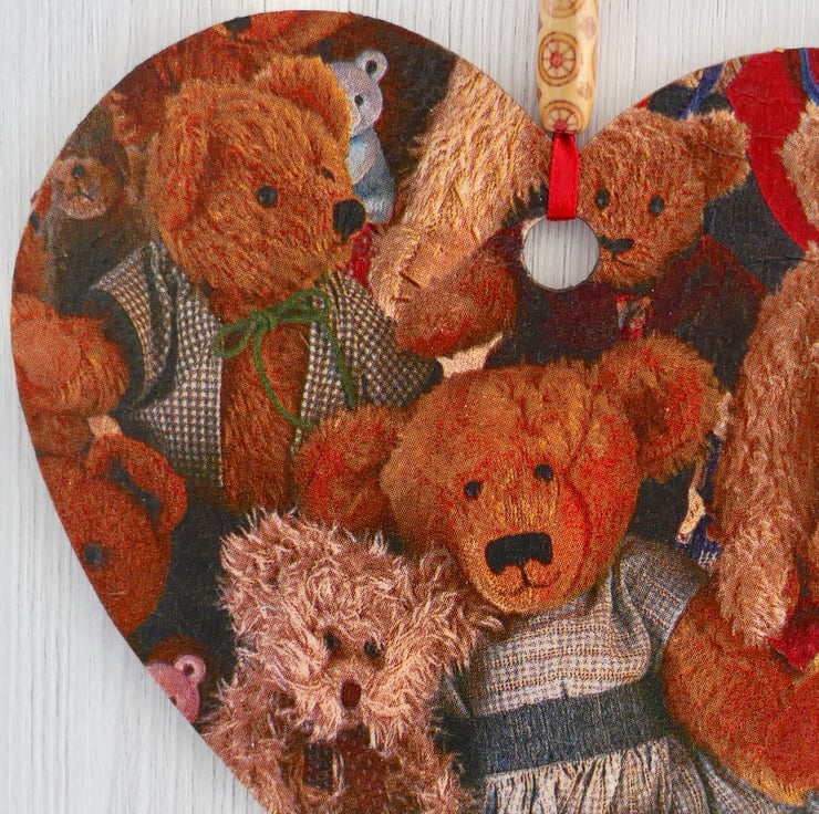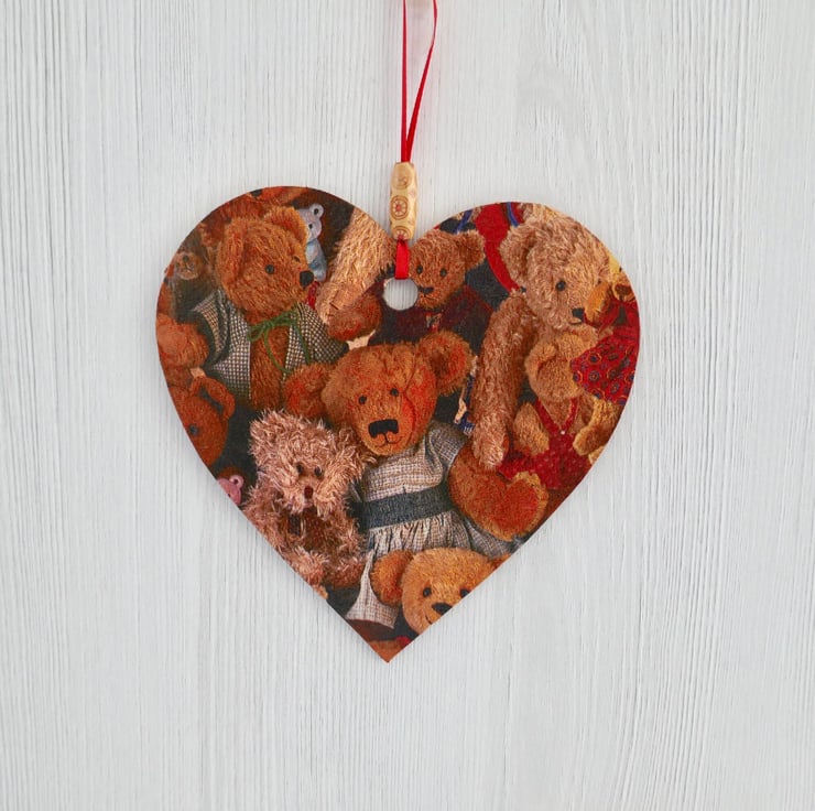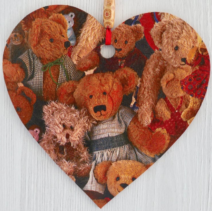 Teddy Bears 6” (15cm) Handcrafted Decoupaged Wooden Hanging Heart / Wall Plaque / Door Hanging.