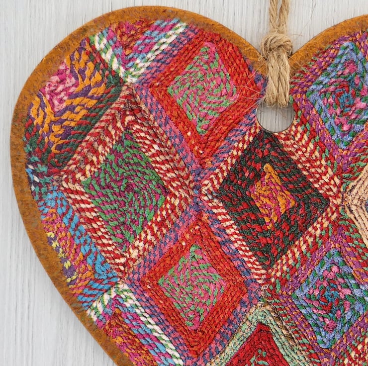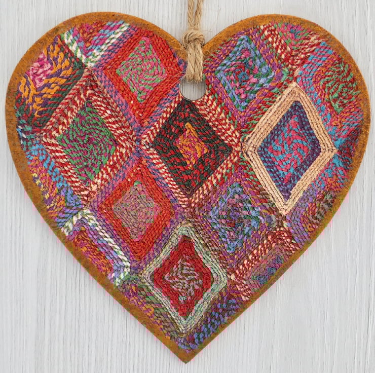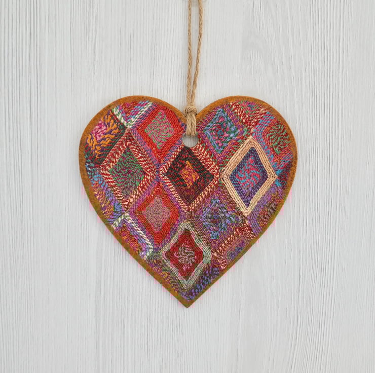 Woven Diamond 6” (15cm) Handcrafted Decoupaged Wooden Hanging Heart / Wall Plaque / Door Hanging.