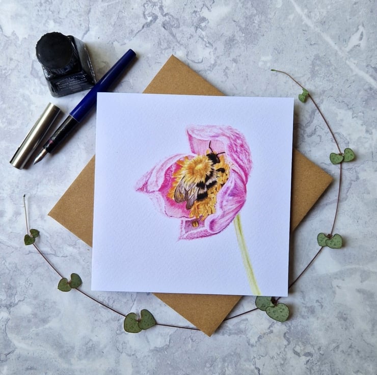 148mm square card with kraft envelope and compostable cellophane wrapper.
