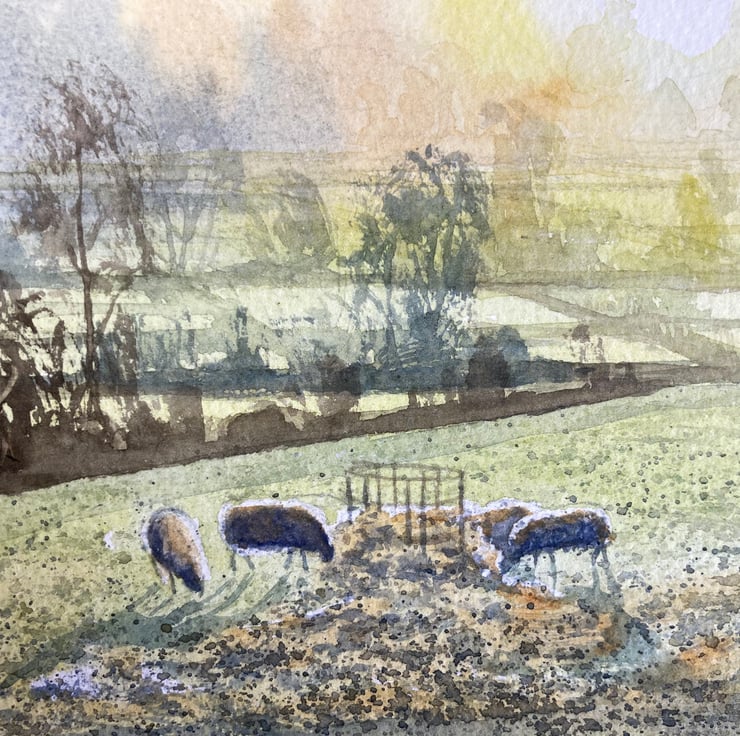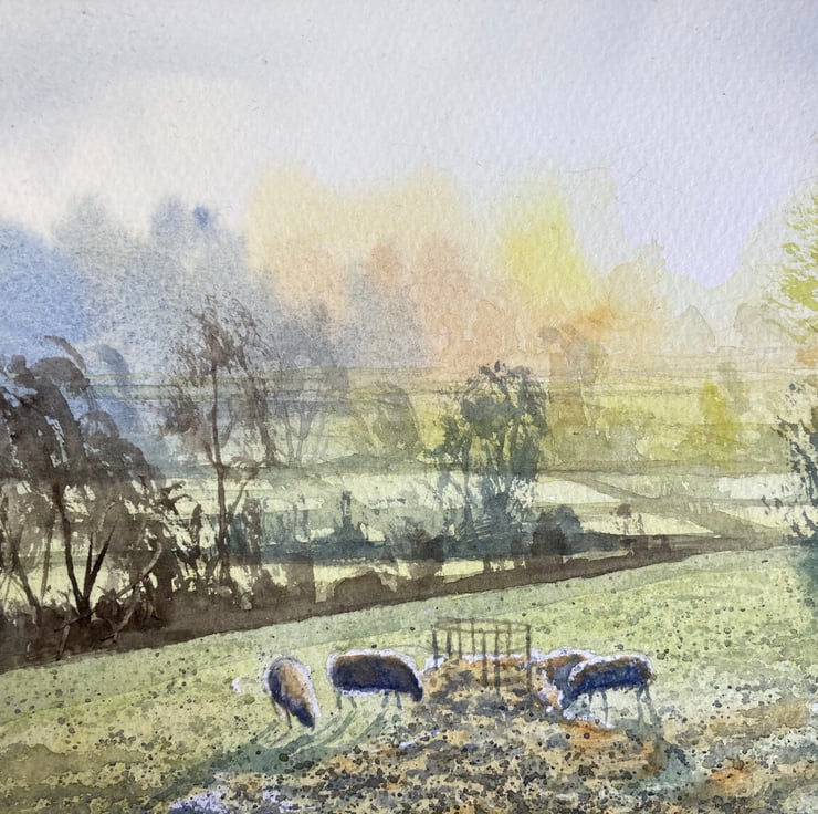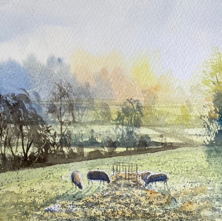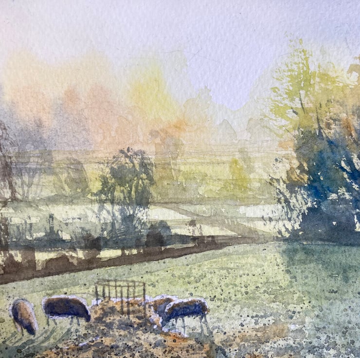 Battersby fields (Pure Original Watercolour FULLY MOUNTED 12” x 10)