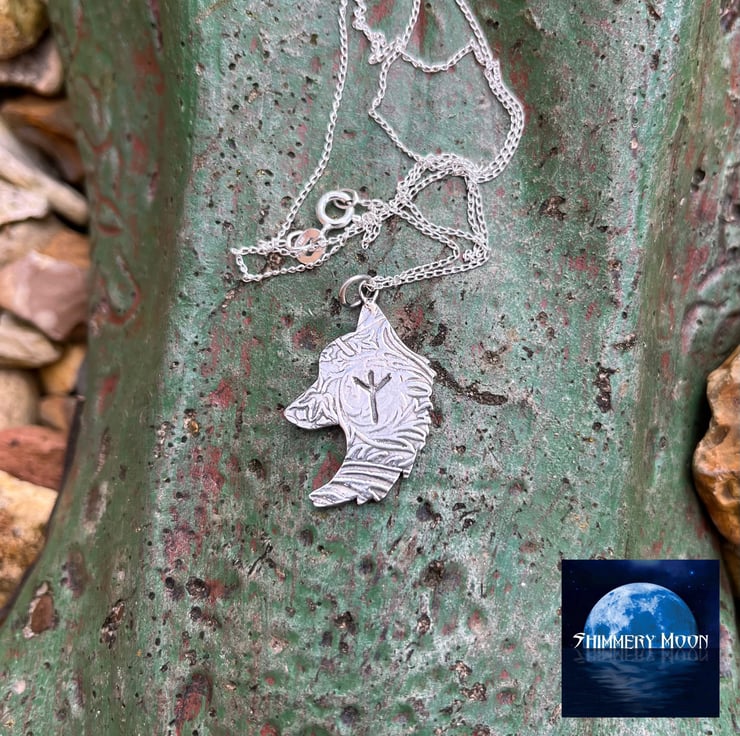 Handmade in solid silver at my studio in South Wales, this beautiful tribal wolf carries the rune of protection on the back.