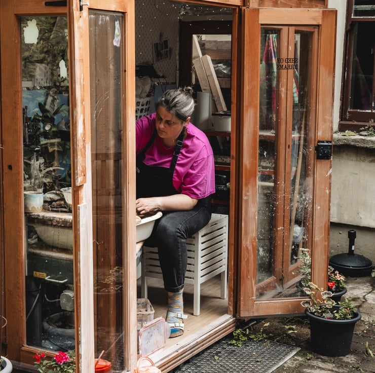 I make all of my pots on my pottery wheel in my tiny back garden studio in St Werburghs, Bristol. These handthrown ceramic flower frogs are thrown from my reclaimed stoneware clay, and fired twice in my eco-friendly efficient kiln.