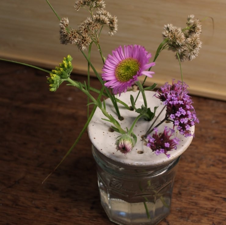 My handthrown ceramic flower frogs are ideal for small bunches of flowers, and they will transform your empty jam jars into a beautiful vase to add style to your table or sideboard. The flower frog lets you create simple but beautiful floral arrangements with little effort.
