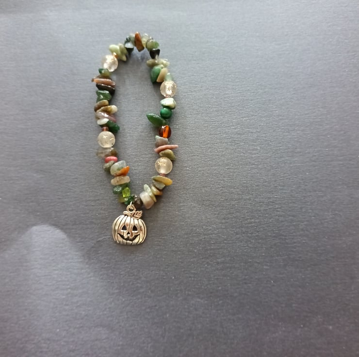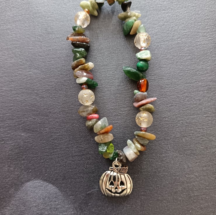 I love pumpkin and Halloween themes and wanted to use a mix of moss agate and natural coloured assorted beads for an earthy theme