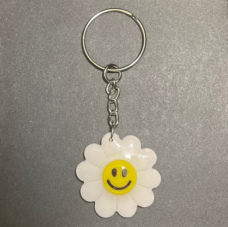 Bring a little sunshine wherever you go with this adorable Smiley Daisy Keychain. Featuring a white daisy with a bright yellow smiley face at its centre, this charming accessory is perfect for adding a happy touch to your keys, bags or zippers.