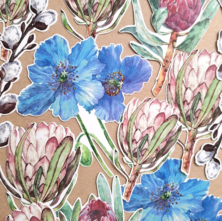 Extra large handmade die cut ephemera / embellishments with a beautiful watercolour style printed onto 250gsm silk cardstock. Wonderful for as card toppers or for scrap booking, journaling, etc. They would be good for large statement pieces on top of cards.