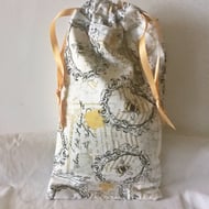 DETAILS - handmade using cats print green cotton fabric and lined in peach polka dot cotton fabric