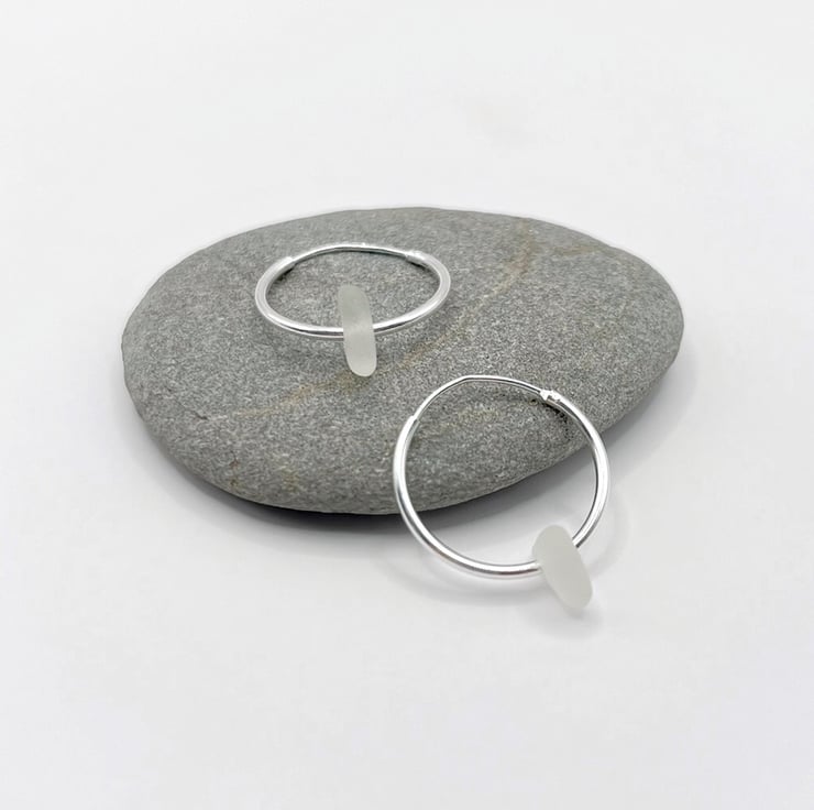 Cornish sea glass on hinged sterling silver hoop earrings in a choice of either 18mm or 30mm. The hoops used in the photos are 18mm.