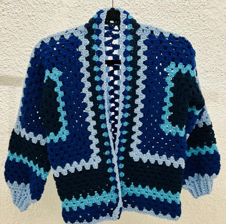 Hexi cardigan, short, in different shades of blue: navy blue, cobalt blue, baby blue, turquoise blue, aqua blue. The chest circumference 84cm, Length 55 cm. Unisex.