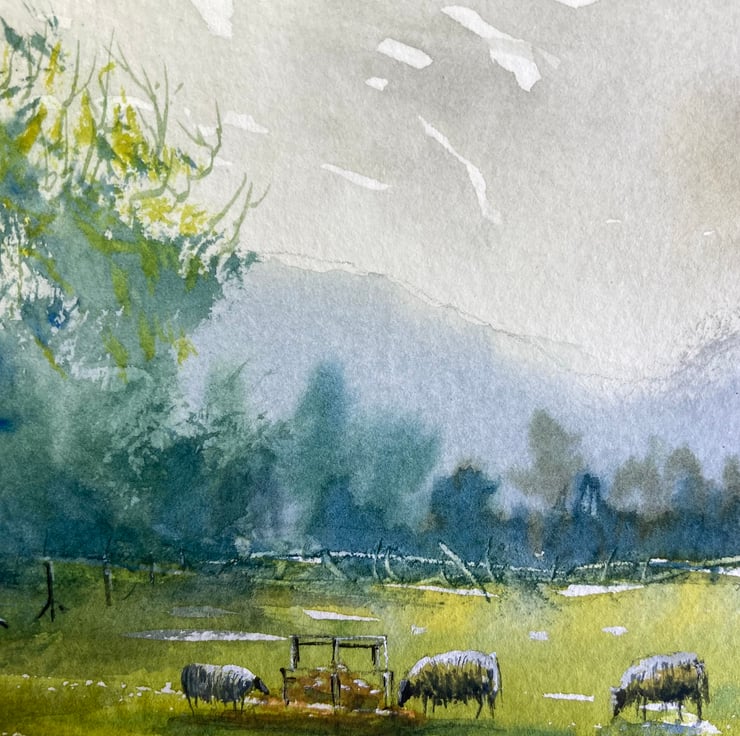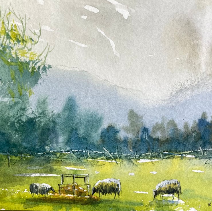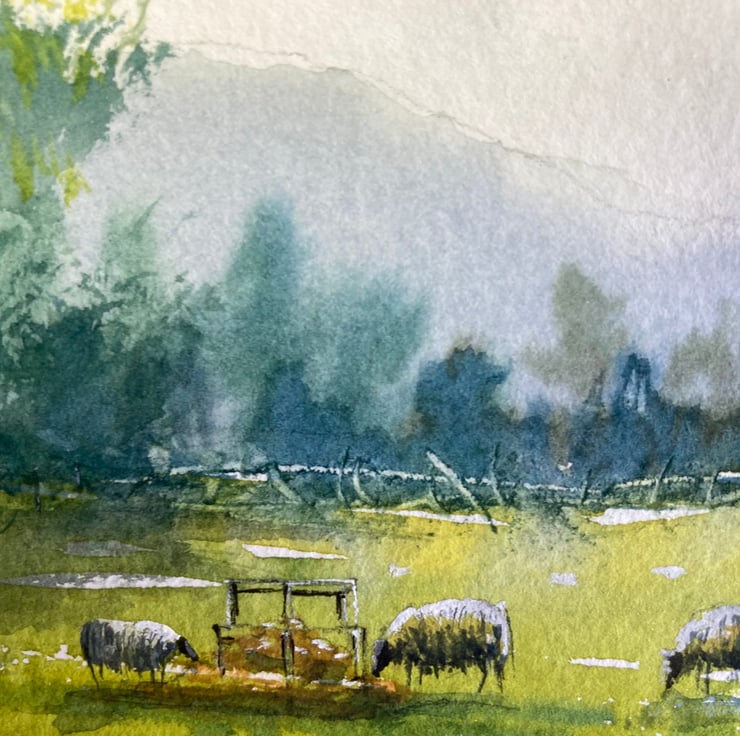 Swainby back fields (Pure Original Watercolour FULLY MOUNTED 8” x 6”)