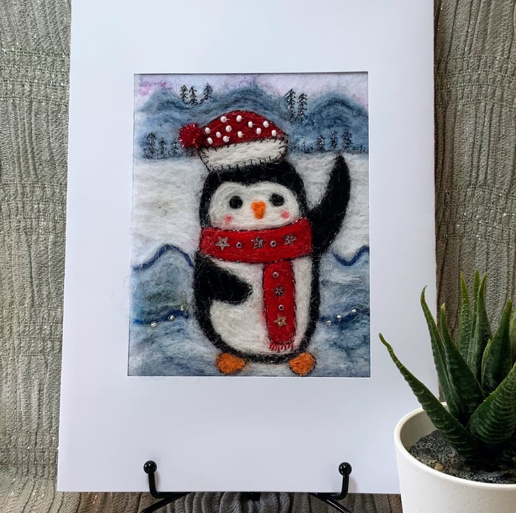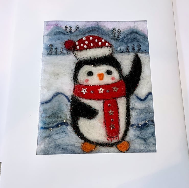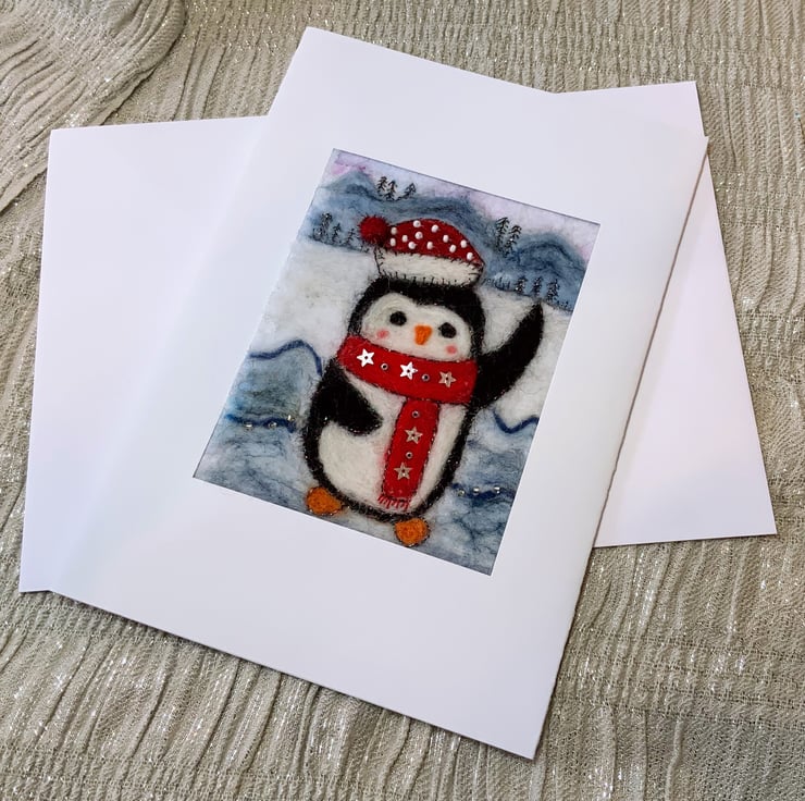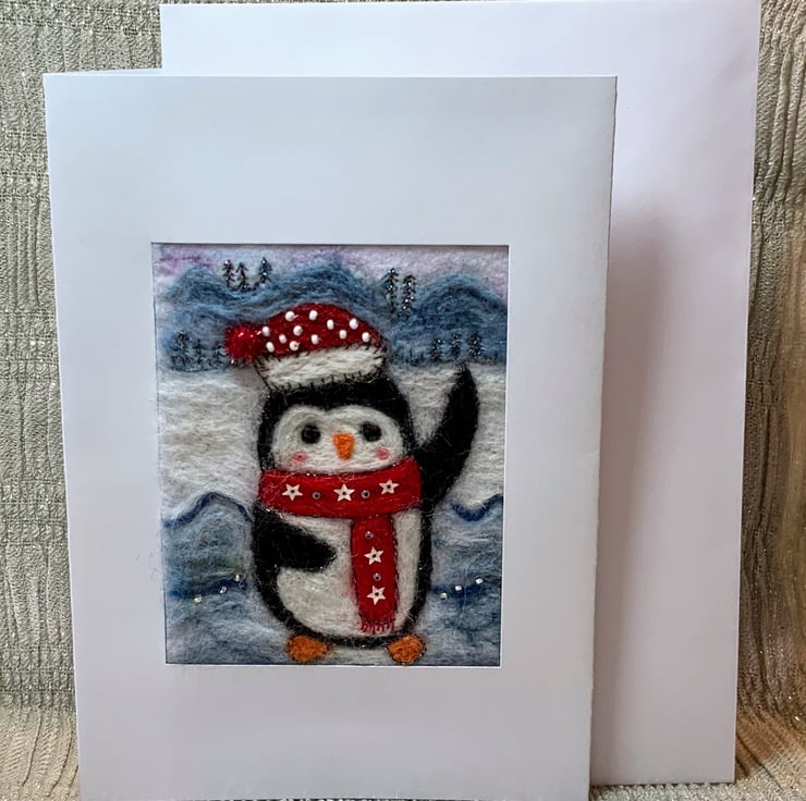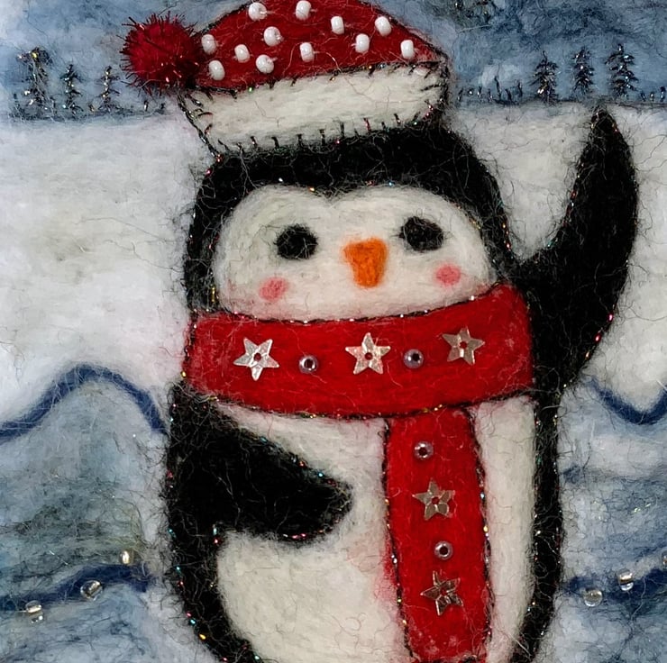This jolly festive penguin is giving you a wave to wish you happy Christmas.