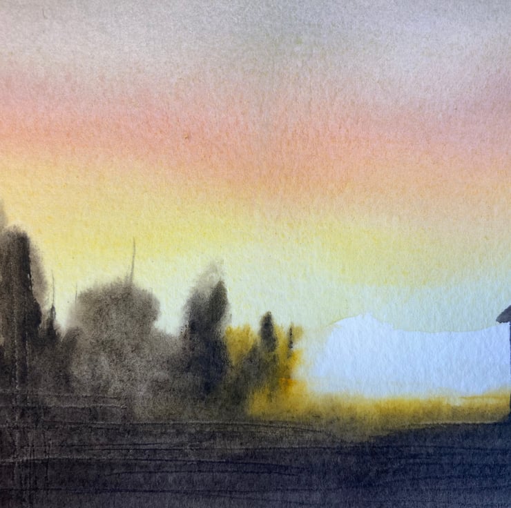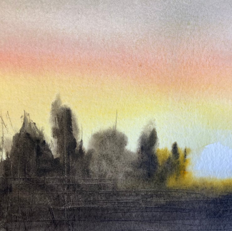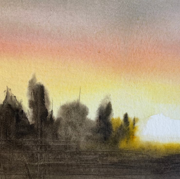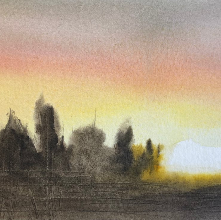 Sunset from my back window (Pure Original Watercolour FULLY MOUNTED 8” x 6”)