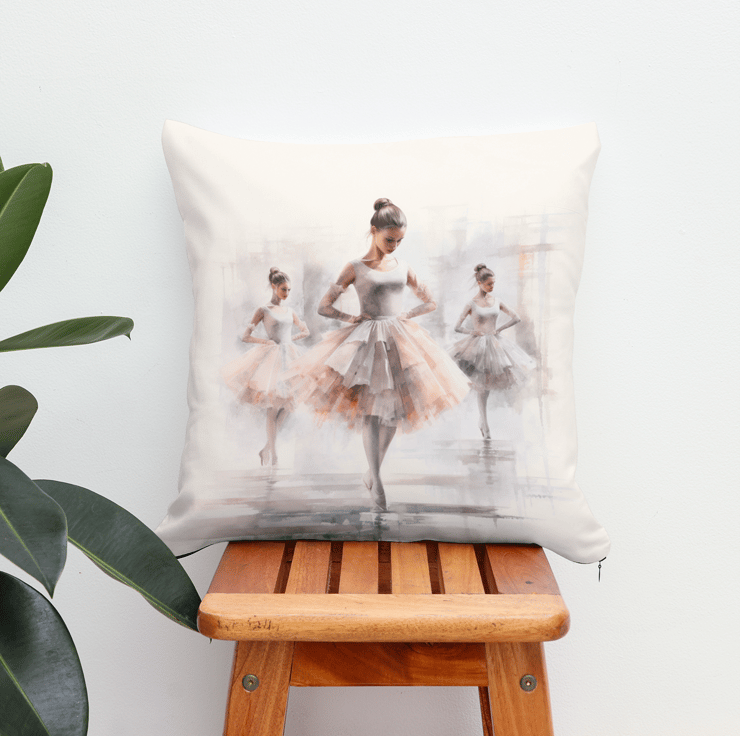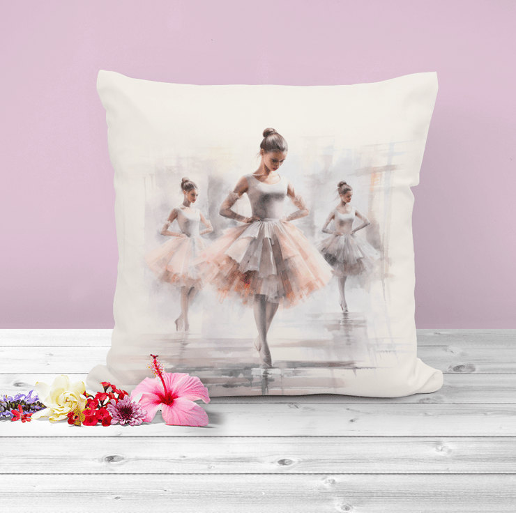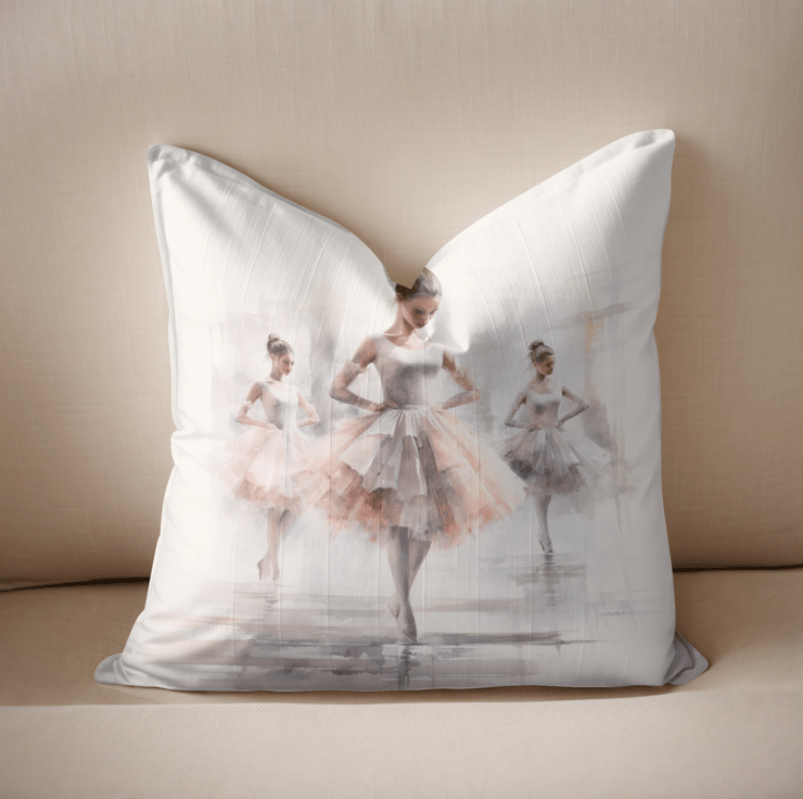 Ballerina Cushion in soft pastel shades, watercolours, trio of ballerina,s .