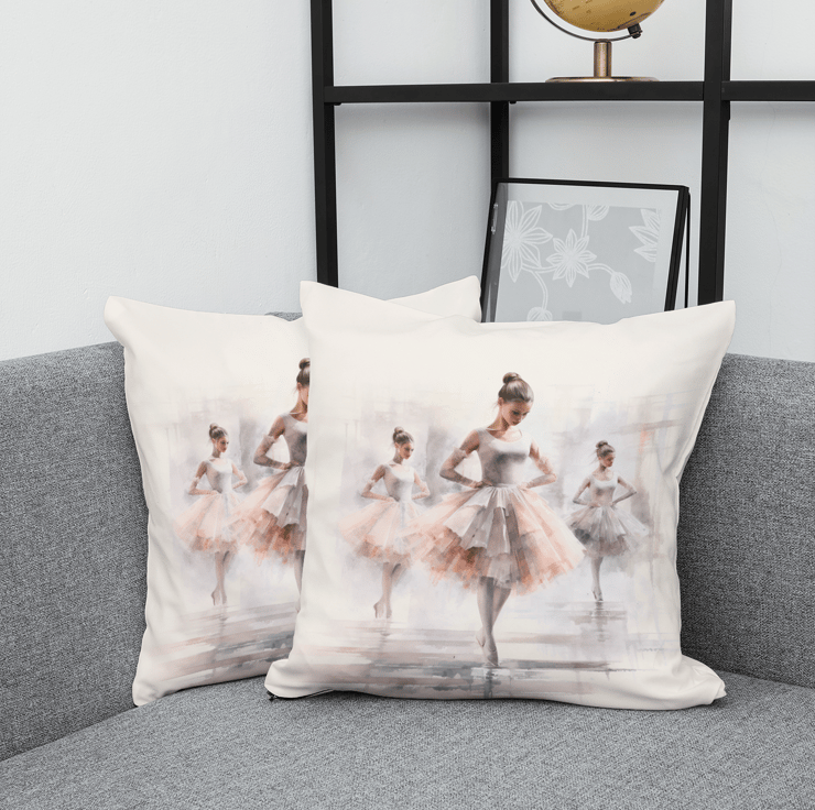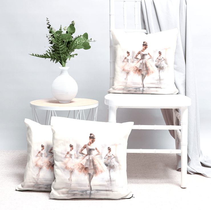 This cushion/pillow has a distinctive design of a trio of ballerina,s, soft faux suede fabric with a top zipper. This can be washed at a low temperature. Perfect for a gift for any adult or child ballerina, or perfect for a sofa or to place on a bed.The soft pastel tones make it suitable for any room. This is 18 x 18 inches square and the inner pad that comes with it makes it plump but comfy. This is inspired by a close relative now taking ballet lessons. A unique design created in our little workshop in the country, looking out into the Kent fields with sheep, created late 2024. This is all on a white background. The price is for one cushion with a inner filler pad. All items are made in the UK.