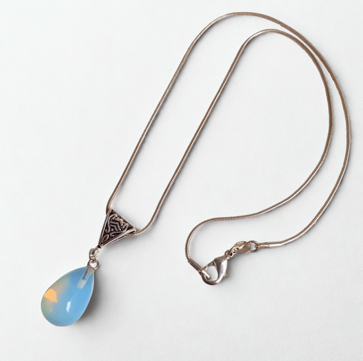 This opal pendant hangs on a nickel free 925 silver snake chain with a lobster clasp. The chain supplied can be 16, 18 or 20 inch in length.