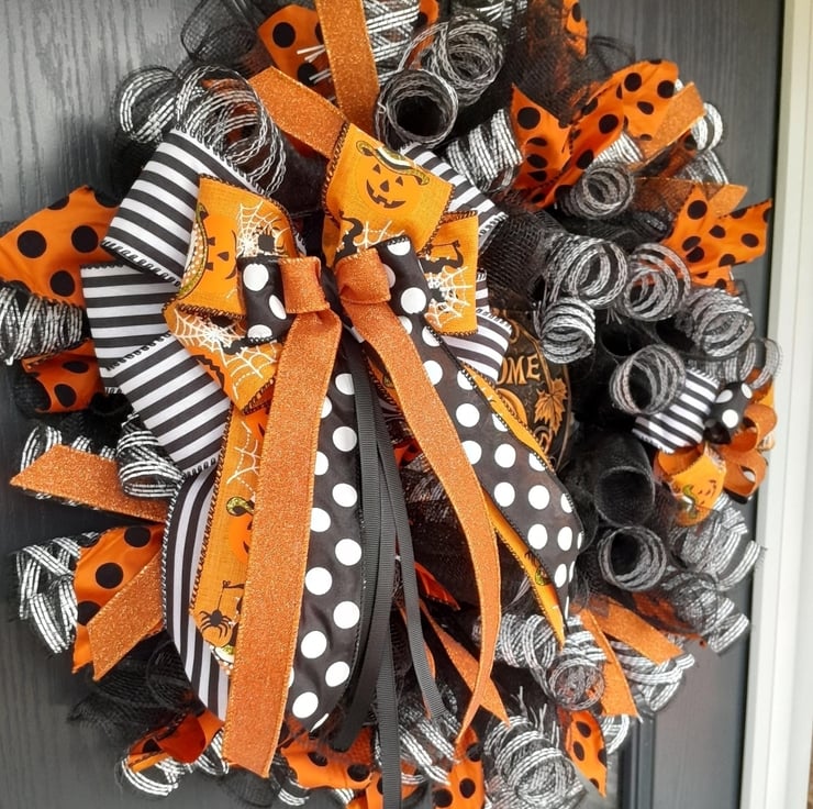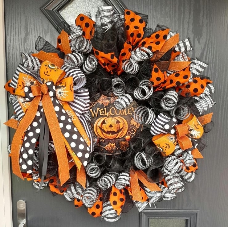 Halloween Door Wreath - Halloween Pumpkin Decomesh Wreath - Gothic Wreath - Autu