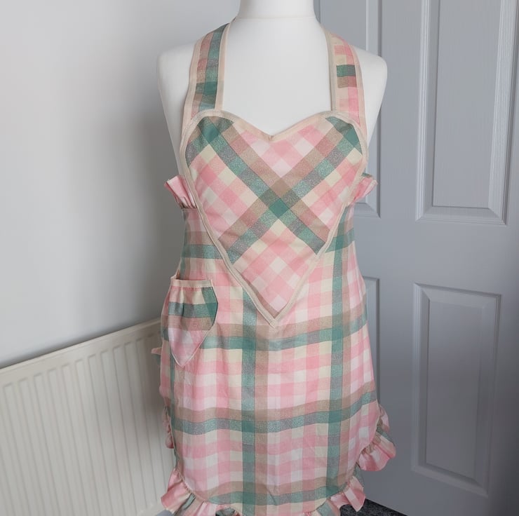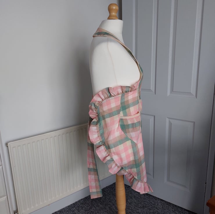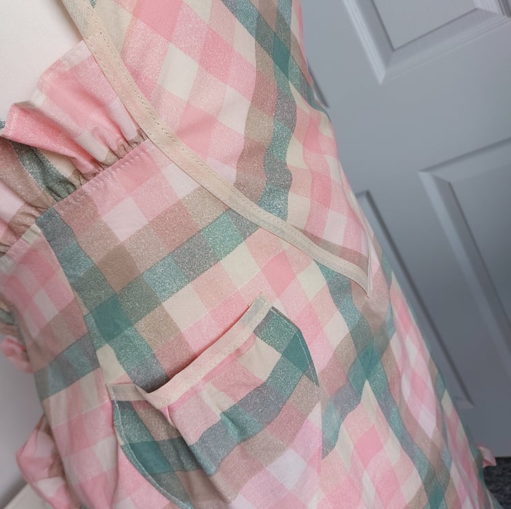 Handmade using a vintage gingham fabric and a beige cotton bias trim
