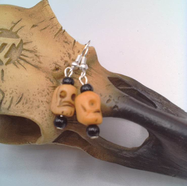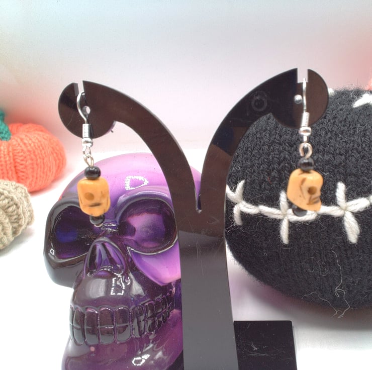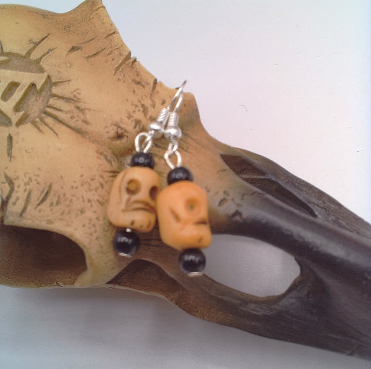 Halloween Bone Skull And Black Bead Earrings, Halloween Earrings, Gift for Her, Novelty Earrings, Halloween Gift, Halloween Earrings, Halloween Jewellery, Novelty Jewellery