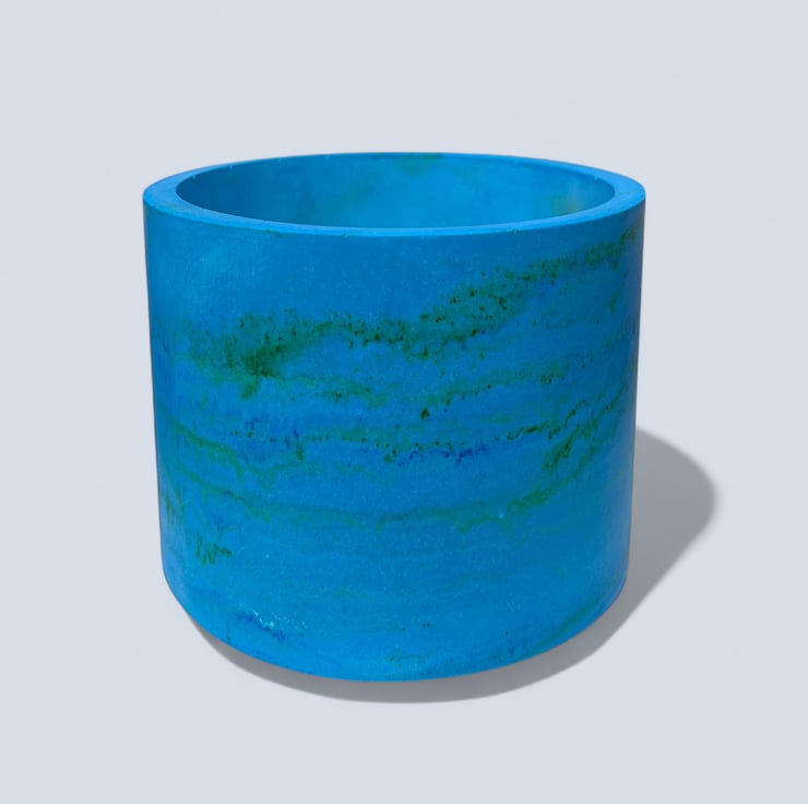 This handmade blue plant pot features blue and green marbling inspired by the colours of the sea. I used different shades of blue and green to create the seascape effect that swirls around the pot and then added a small amount of green glitter pigment to give it a few subtle shimmery patches. The beautiful marbling effect makes each pot a unique piece of art, making it an ideal gift for a special person or a lovely treat for yourself.