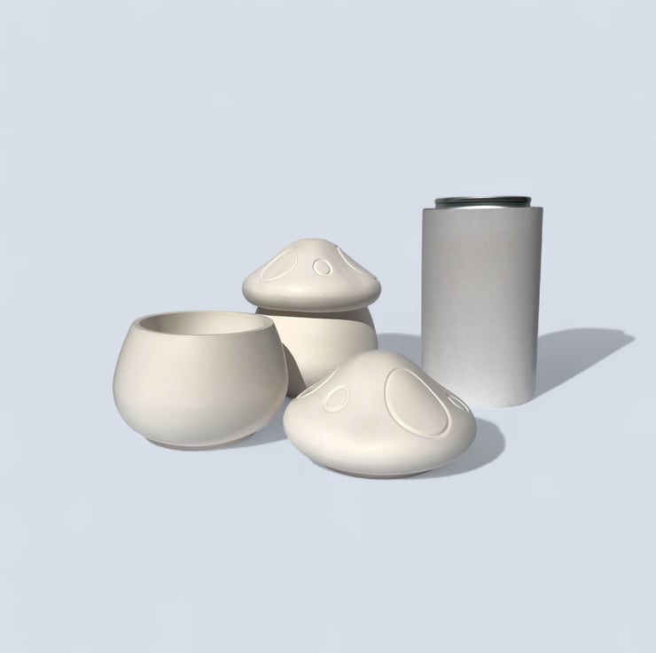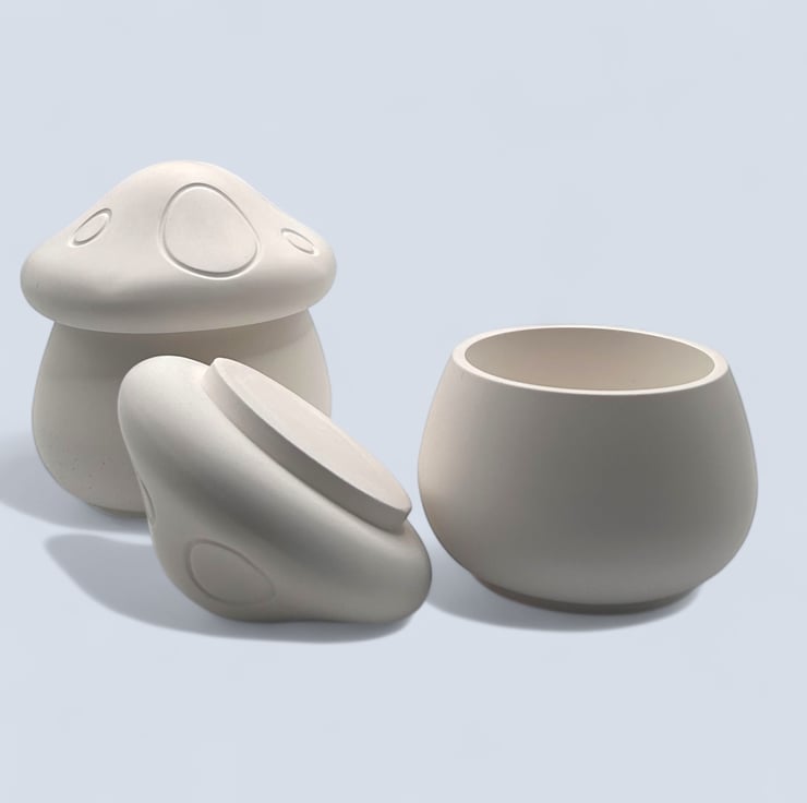White mushroom shaped jewellery box for keepsakes, jewellery, trinkets and small treasures. This handmade trinket box is designed to look like a mushroom with a rounded dome shaped lid and a smooth, curved base, creating a playful, decorative storage pot that suits neutral decor and nature inspired interiors. Its soft white finish makes it a lovely handmade gift for anyone who enjoys calm, minimalist home accessories or unique small storage pieces for a bedside table or dressing area.