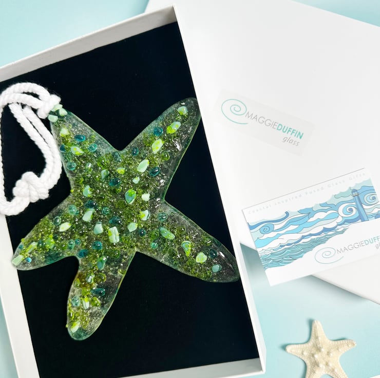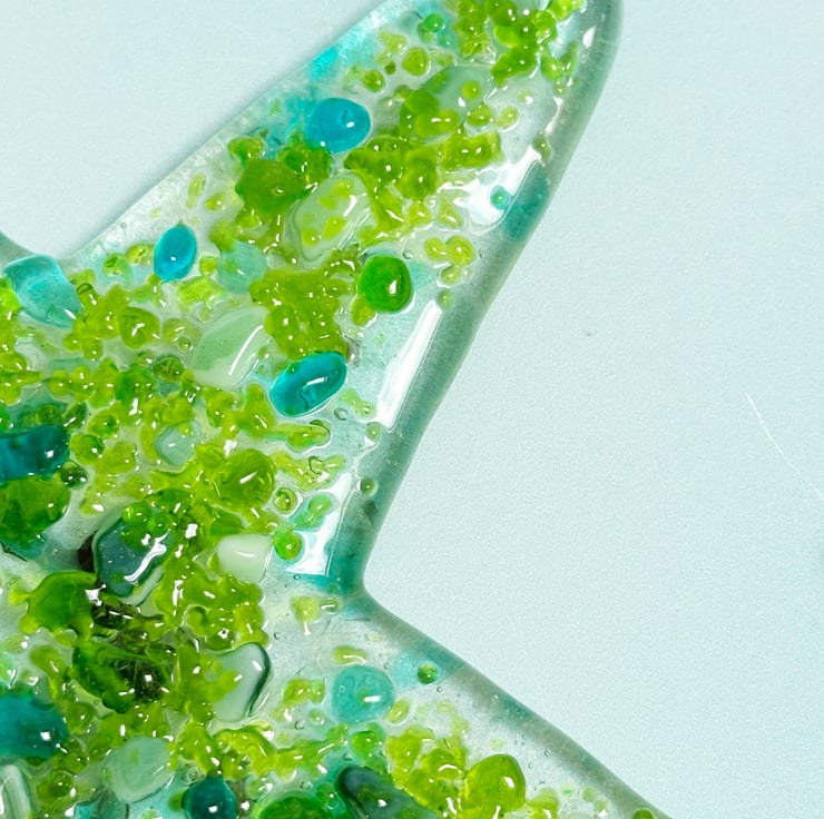 An unusual and quirky piece of fused glass art in the form of a decorative starfish.
