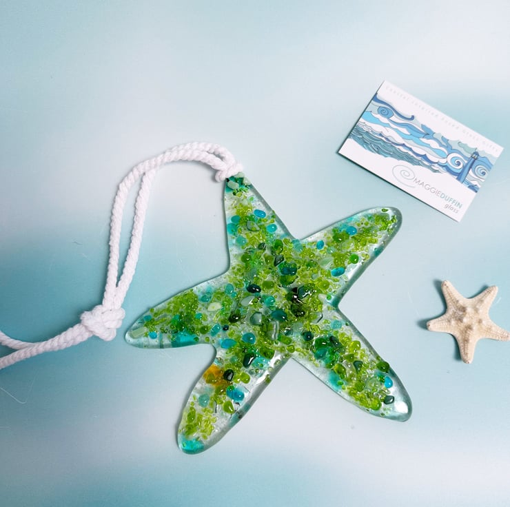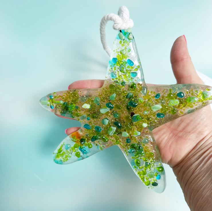 Fused Glass Starfish - On Rope - Greens & Transparent