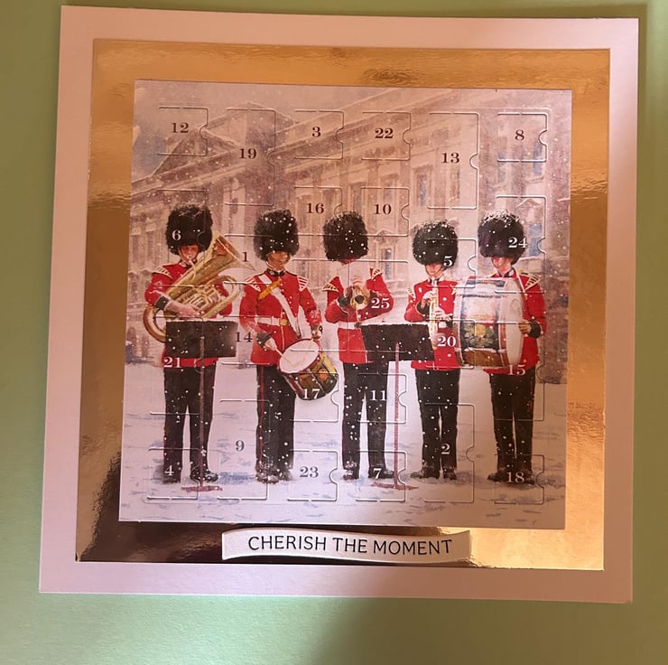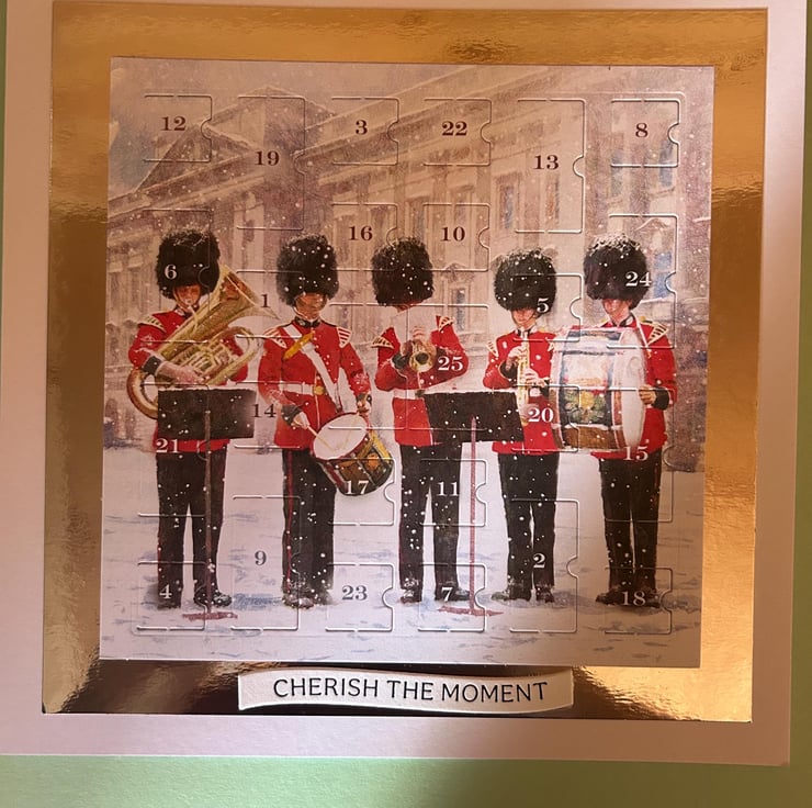 Handmade 8x8 inch advent calendar Christmas card. Cherish the moment.