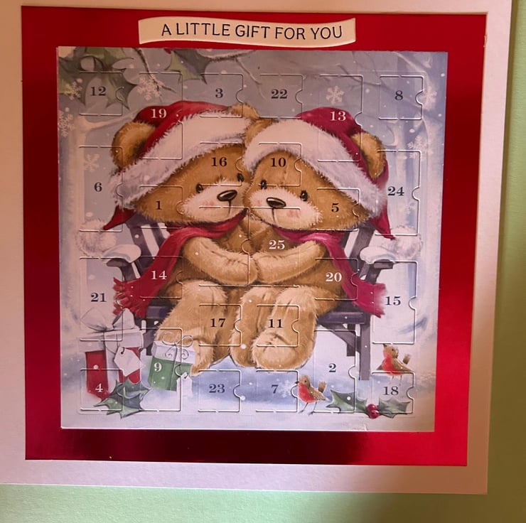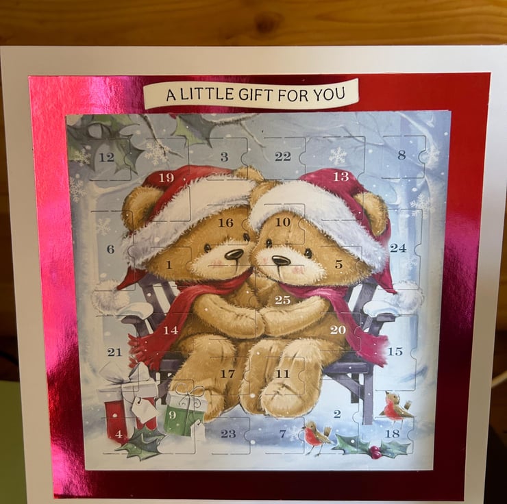 Handmade 8x8 inch advent calendar Christmas card. A little gift for you sentiment.