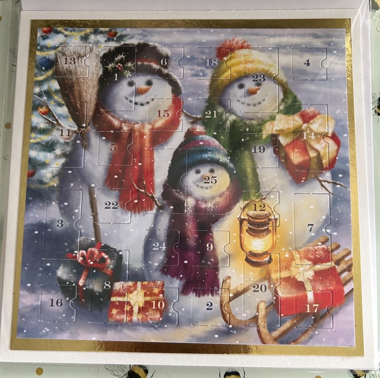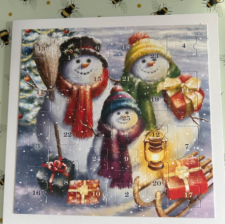 Handmade 7 x 7 inch advent calendar Christmas card.