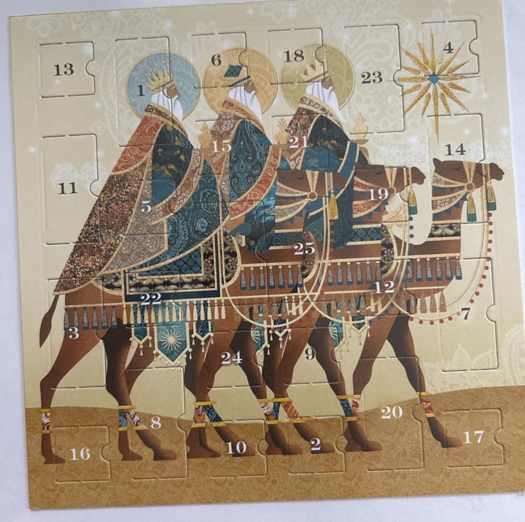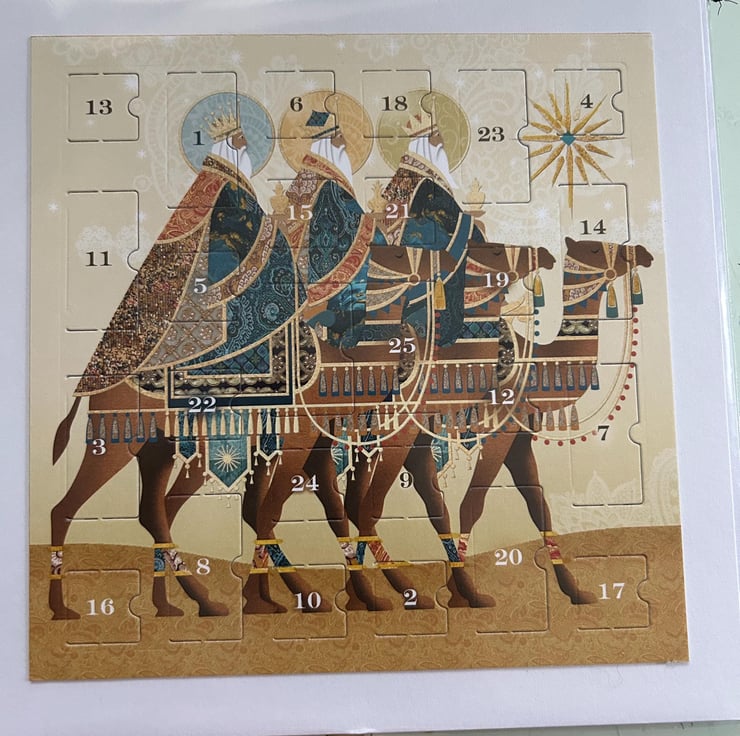 Handmade 7 x 7 inch advent calendar Christmas card.