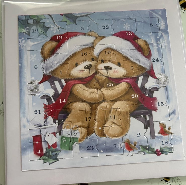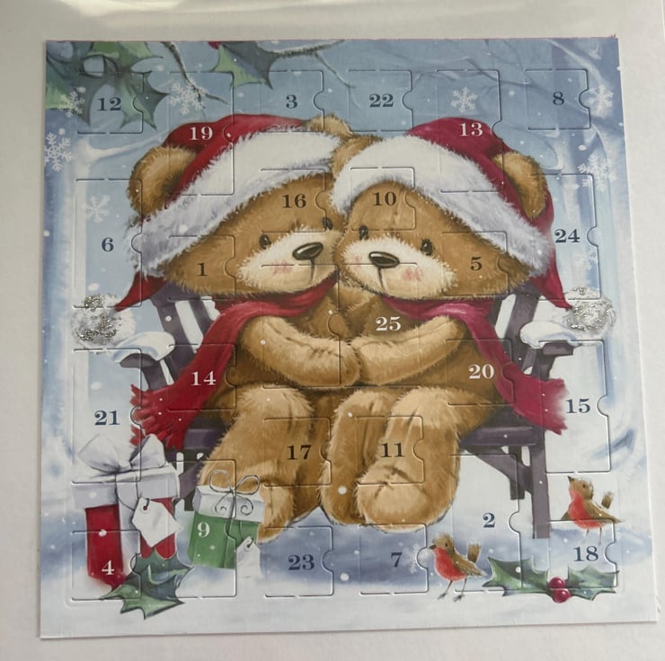 New for Christmas teddy bear hugs at Christmas Advent Calendar Card Handmad