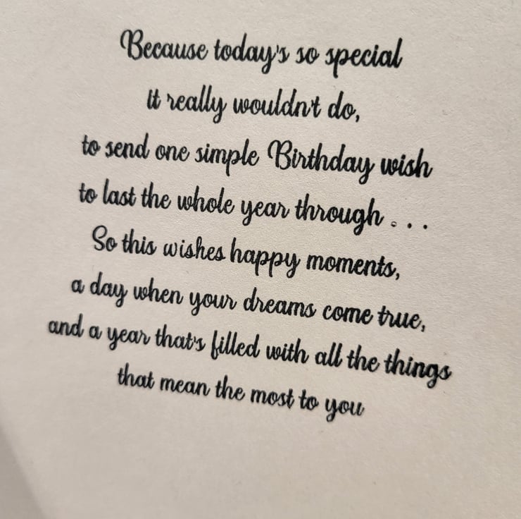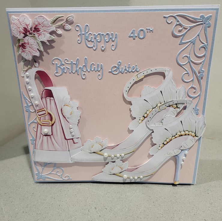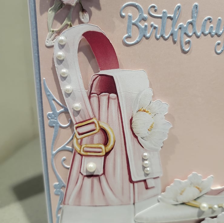 This card measures approx 7x7 inches. The elements are cut out and layered onto foam tape to create depth and dimension. I have added some pearl style flatbacks onto the shoes and handbag. I can change the sentiment to a different relative or you can just have happy birthday. If you would prefer to have the inside left blank please let me know. Otherwise you will receive the quote In the photos.
