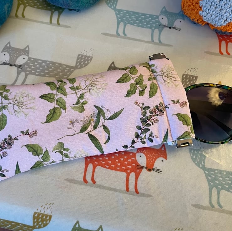 Padded glasses case made with pretty Royal Horticultural Society Fabric. Metal clip opening.