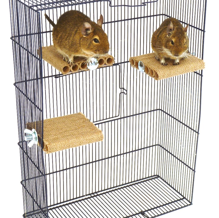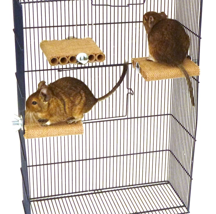 We designed these shelves specifically with degus in mind. They are a easy to attach shelf accessory and are hand-made from degu-safe materials which provide hours of fun for your inquisitive pets whilst being a safe, comfortable place for your Degu to perch.
