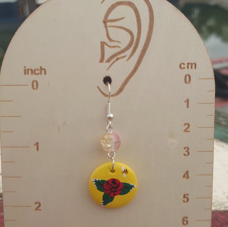 These lightweight wooden earrings are handpainted in the traditional style of the British canals.