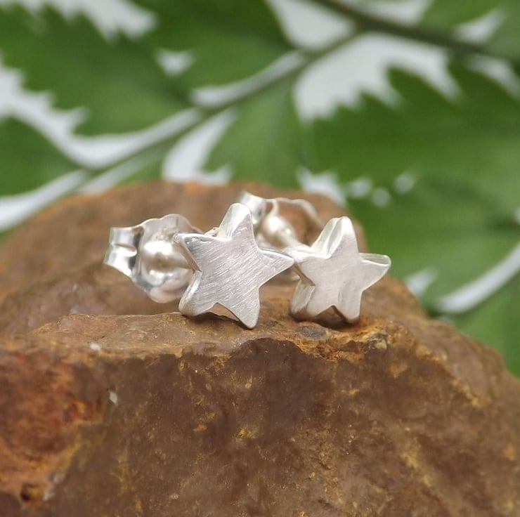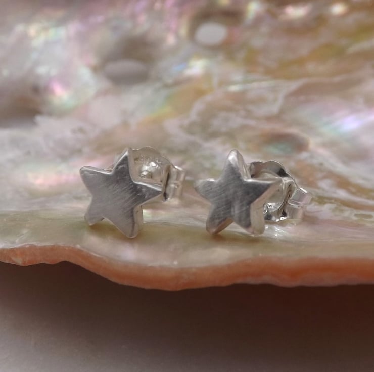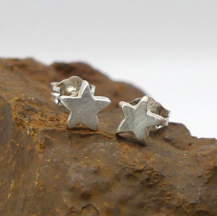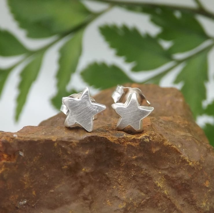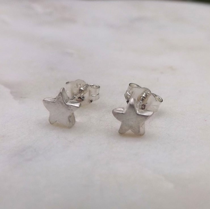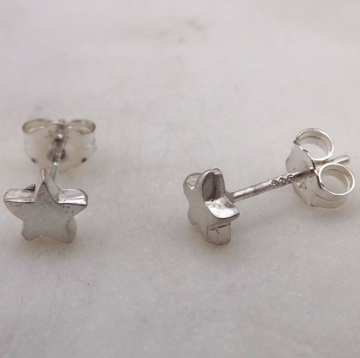Recycled Sterling Silver Star Stud Earrings.