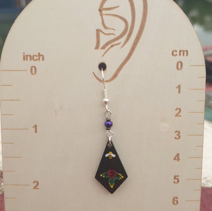 Some of the smallest earrings I've made these feature a red rose on a black background.